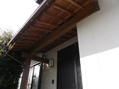 軒天井の既存プリントベニヤが経年劣化で剥げていた為大工さんに依頼し